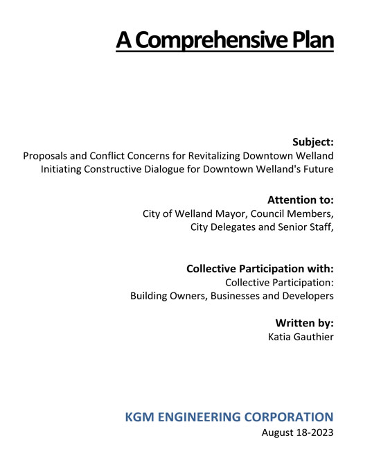This is a collective proposal for downtown Welland's revitalization that outlines plans for downtown improvments including: